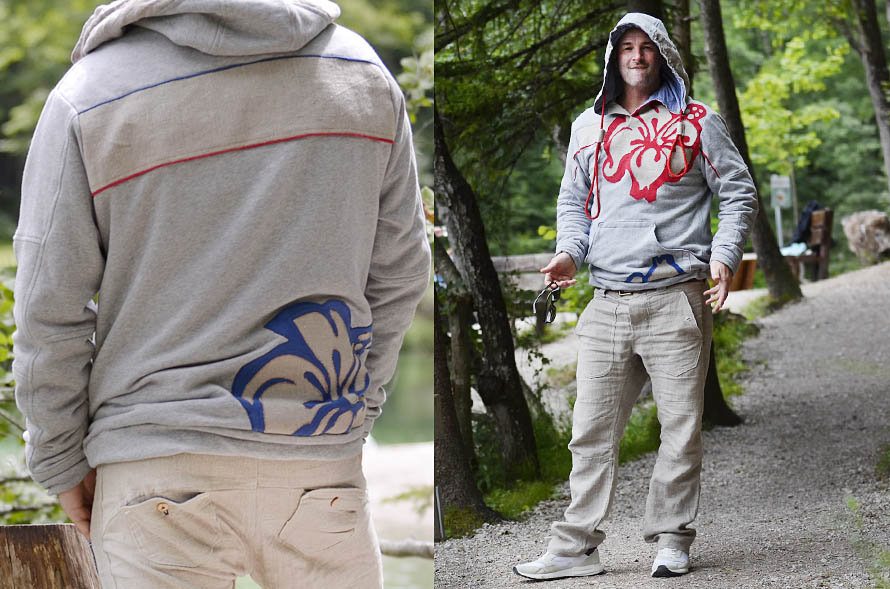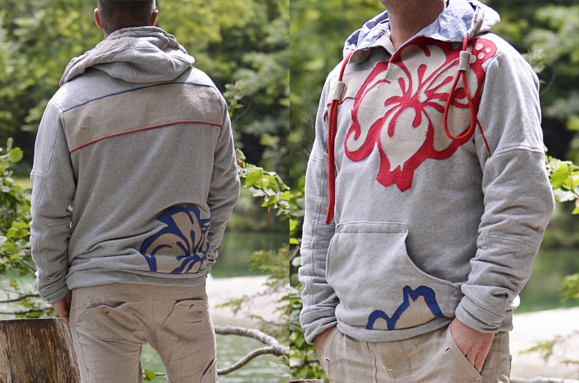 'Sweat Hoodie (Kapuze) grau mit Blume Applikation rot und blau (vorne und rückwärtig)' | '2023-06-30 10:07:21'