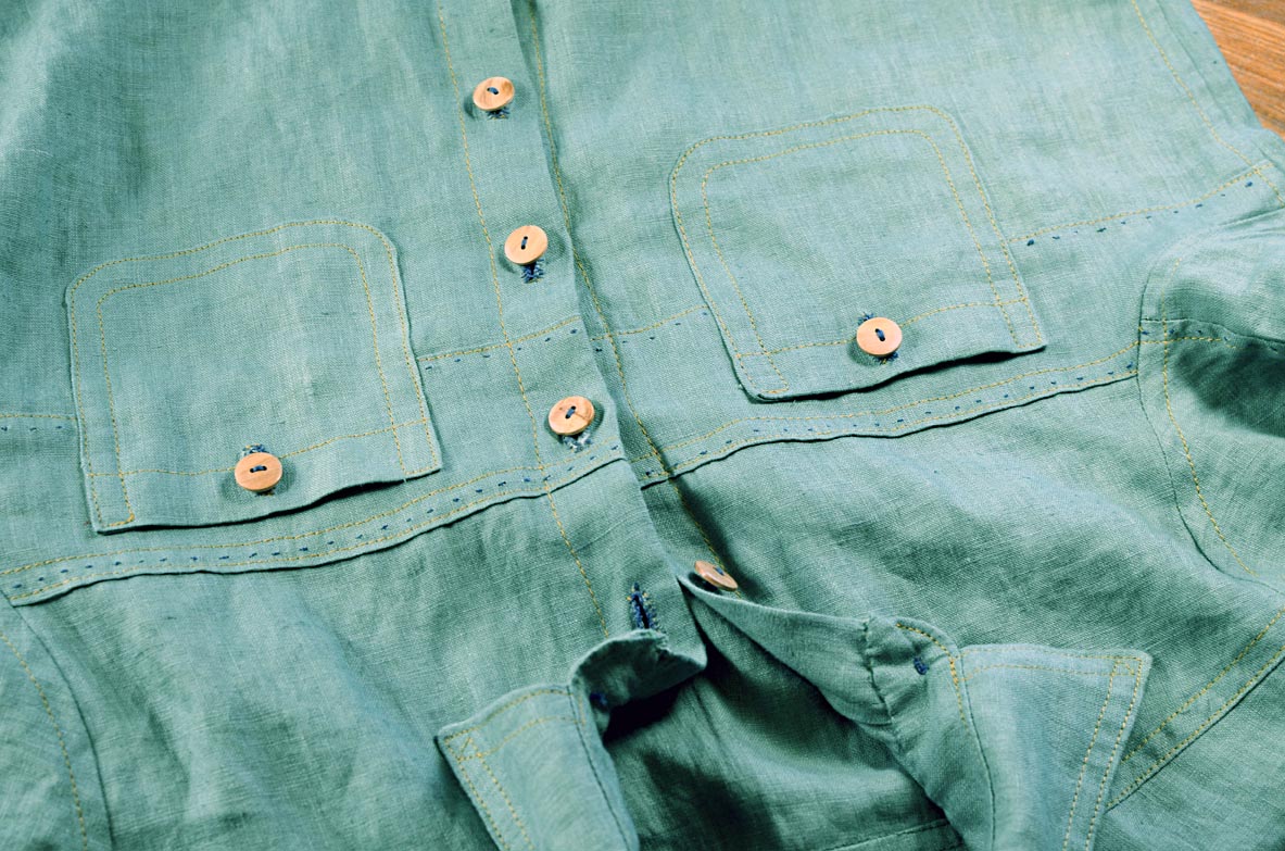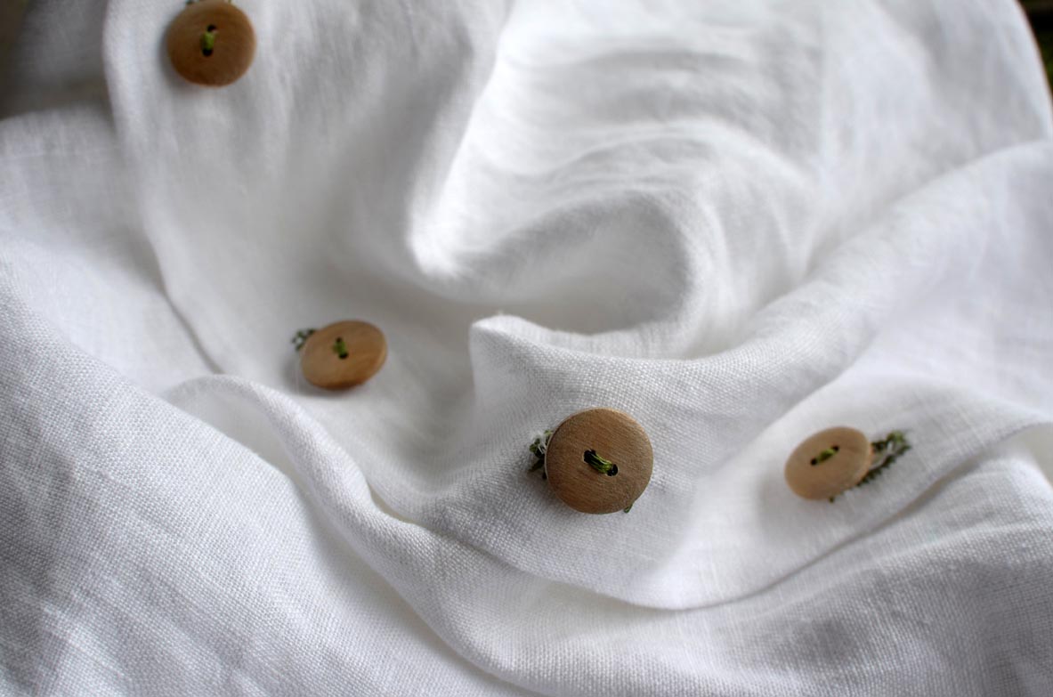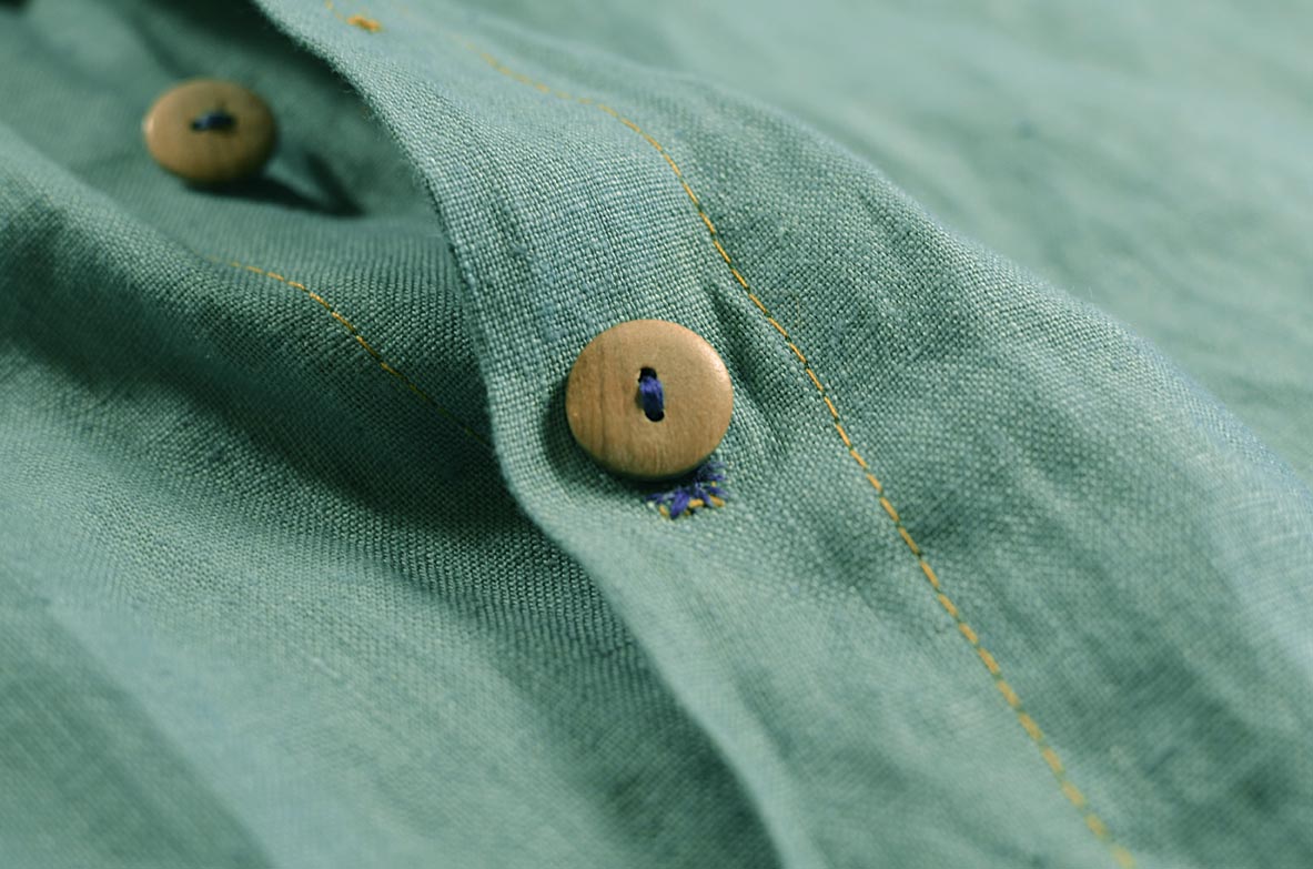 'Camicia in lino con bottoni in legno d'ulivo, asole ricamate a mano' | '0000-00-00 00:00:00'