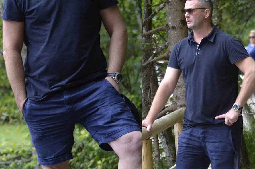 'Herrenhose kurz aus Bio-Baumwolle Webstreifen mit Paspeltaschen dazu T-Shirt Bio-Baumwolle dkl blau' | '2023-06-30 10:07:21'