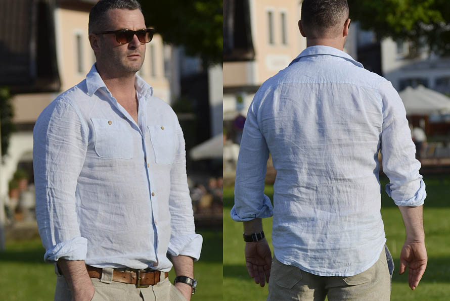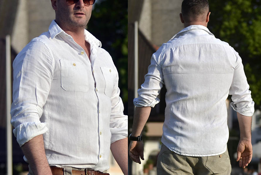 'Herrenhemd Casual Bio-Leinen weiß – Aufgesetzte Taschen (vorne und rückw.)' | '2023-06-30 10:07:21'