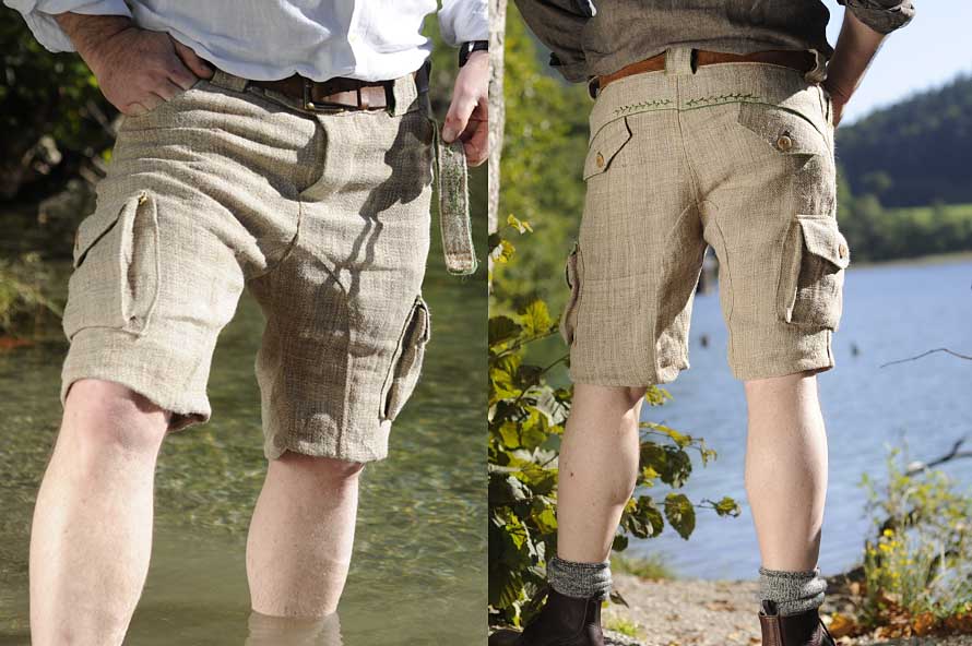 'Herrenhose Bio-Leinen natur in kurz Detail Blasebalktaschen mit Klappe' | '2023-06-30 10:07:21'