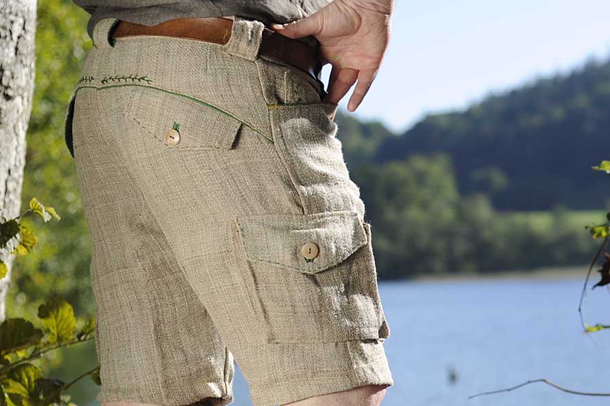'Herrenhose kurz Bio-Brennnessel Fischgrad natur – grün von Hand bestickt – Brennerne (Modell HB-RE-002)' | '2023-06-30 10:07:21'
