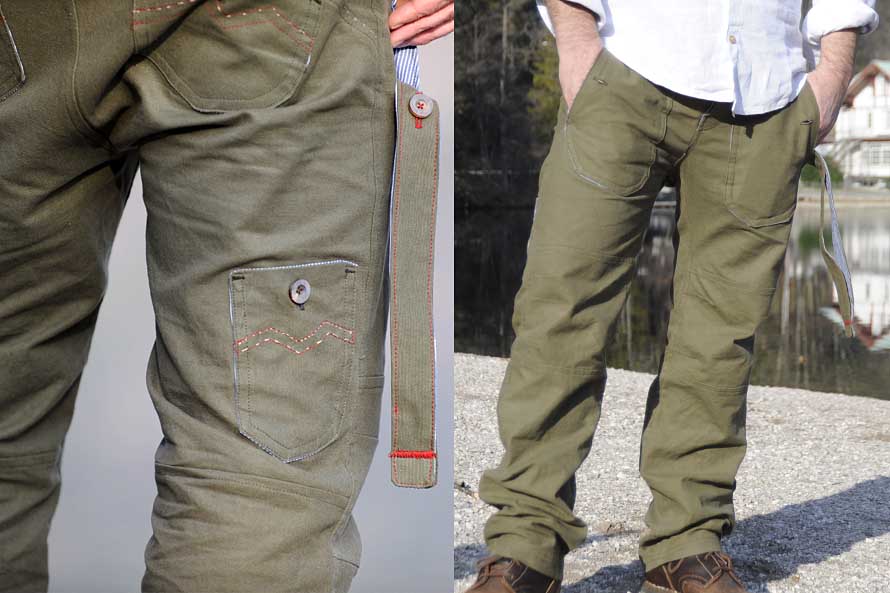 'Herrenhose lang Baumwolle Oliv mit runder Passe handbestickt Büffelhornknöpfe (vorne und rückw) (Modell HC-ES-004)' | '2023-06-30 10:07:21'