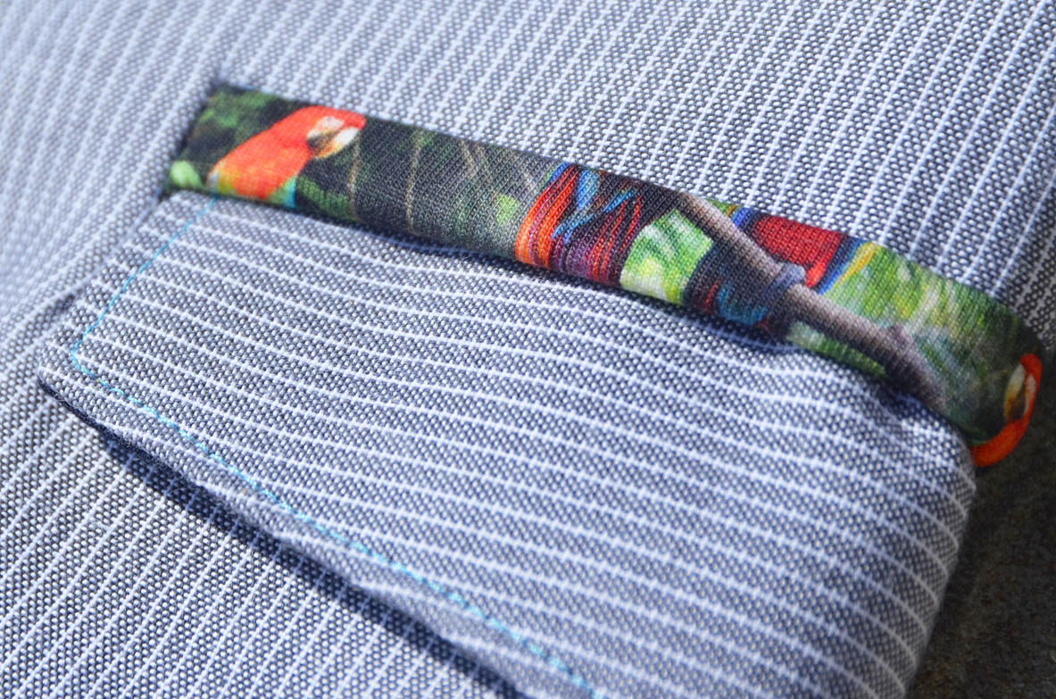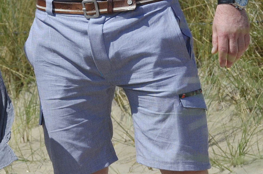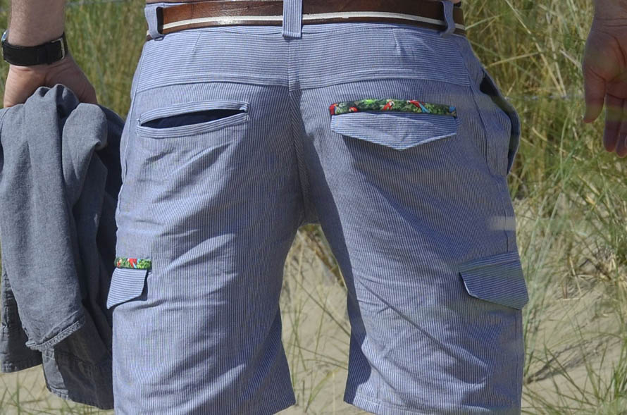 'Herrenhose Leinen kurz Bio-Leinen mit Hemd (Webstreifen hellblau) Details Paspeltaschen mit Klappe Pappagei' | '2023-06-30 10:07:21'