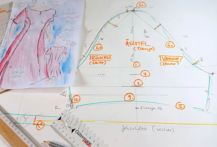 'Schnittkonstruktion Ärmel für Tango-Tanzkleid (Marion)' | '2023-06-30 10:07:21'