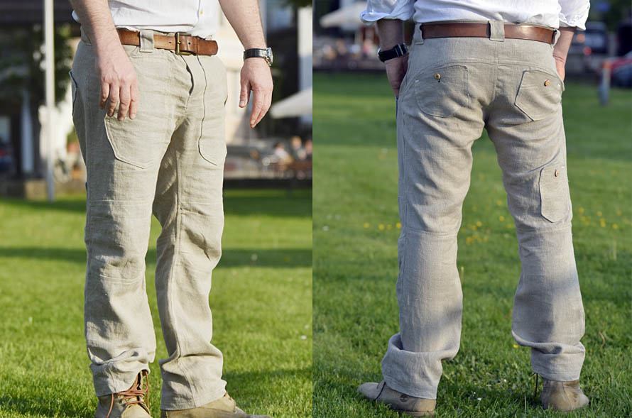 «Tasche applicate con bottoni in legno d'olivo»
